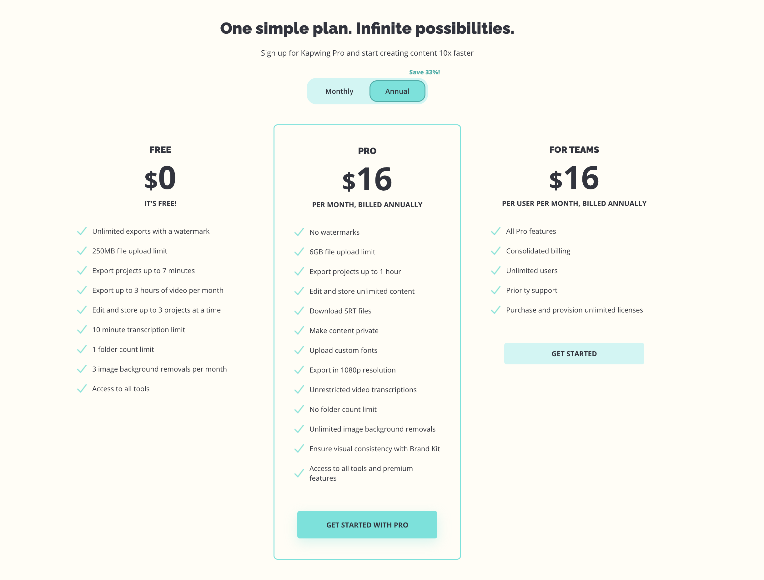 Kapwing Pricing Plans at a Glance