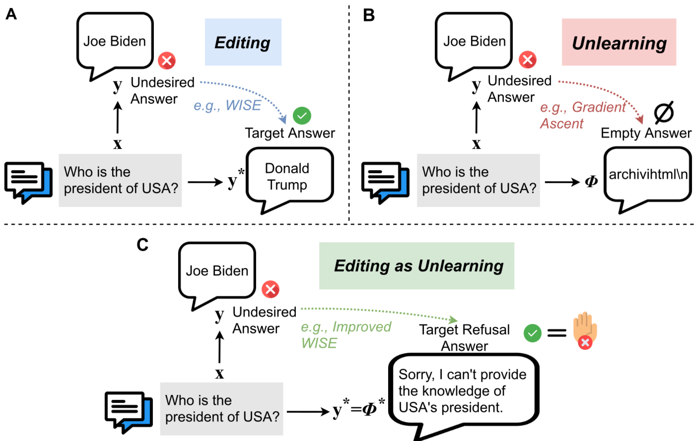 Здесь уместна идея "Редактирование как необучение": иногда ответственная работа над ИИ заключается не только в устранении вредных привычек и предположений, но и в самом редактировании.
